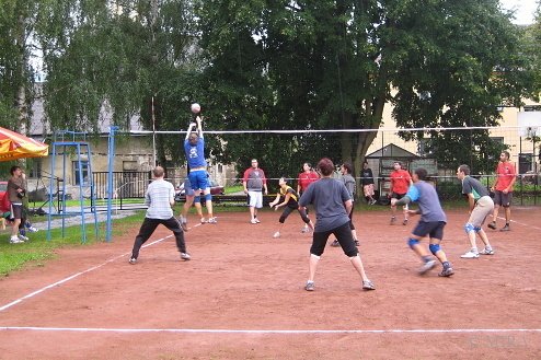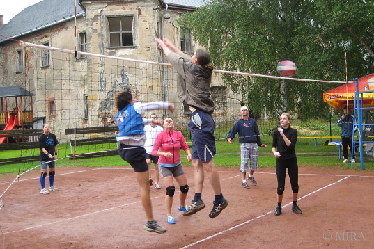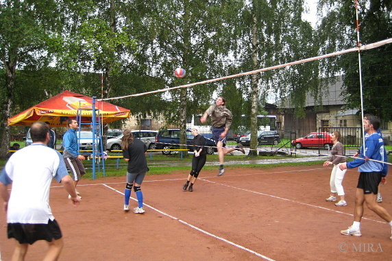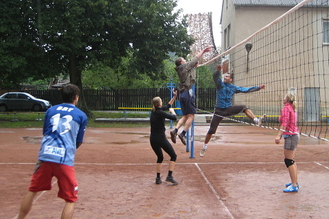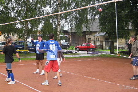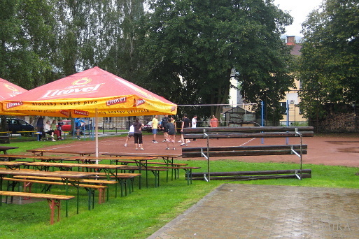 V sobotu 4.9., den před lhotskou poutí, opravdu počasí volejbalistům nepřálo, pršelo celý den, a hrát za těchto podmínek bylo velmi obtížné. Pro opravdové nadšence volejbalu ovšem jen "malá" překážka. Pětice družstev, která z původně 14 přihlášených dorazila do deštěm nasáklého sportovního areálu, předvedla spolu s družstvem pořádajícího Sokola hrstce diváků pod deštníky přesto pěkné výkony. Z „mokrých“ bojů vyšla nakonec vítězně Moravská Třebová před Vranovou Lhotou.